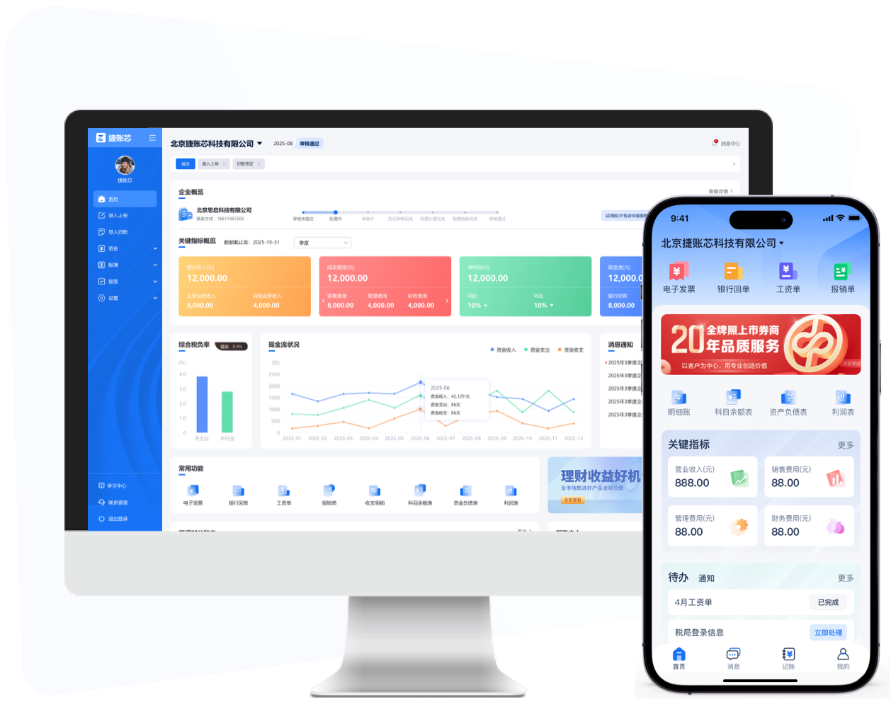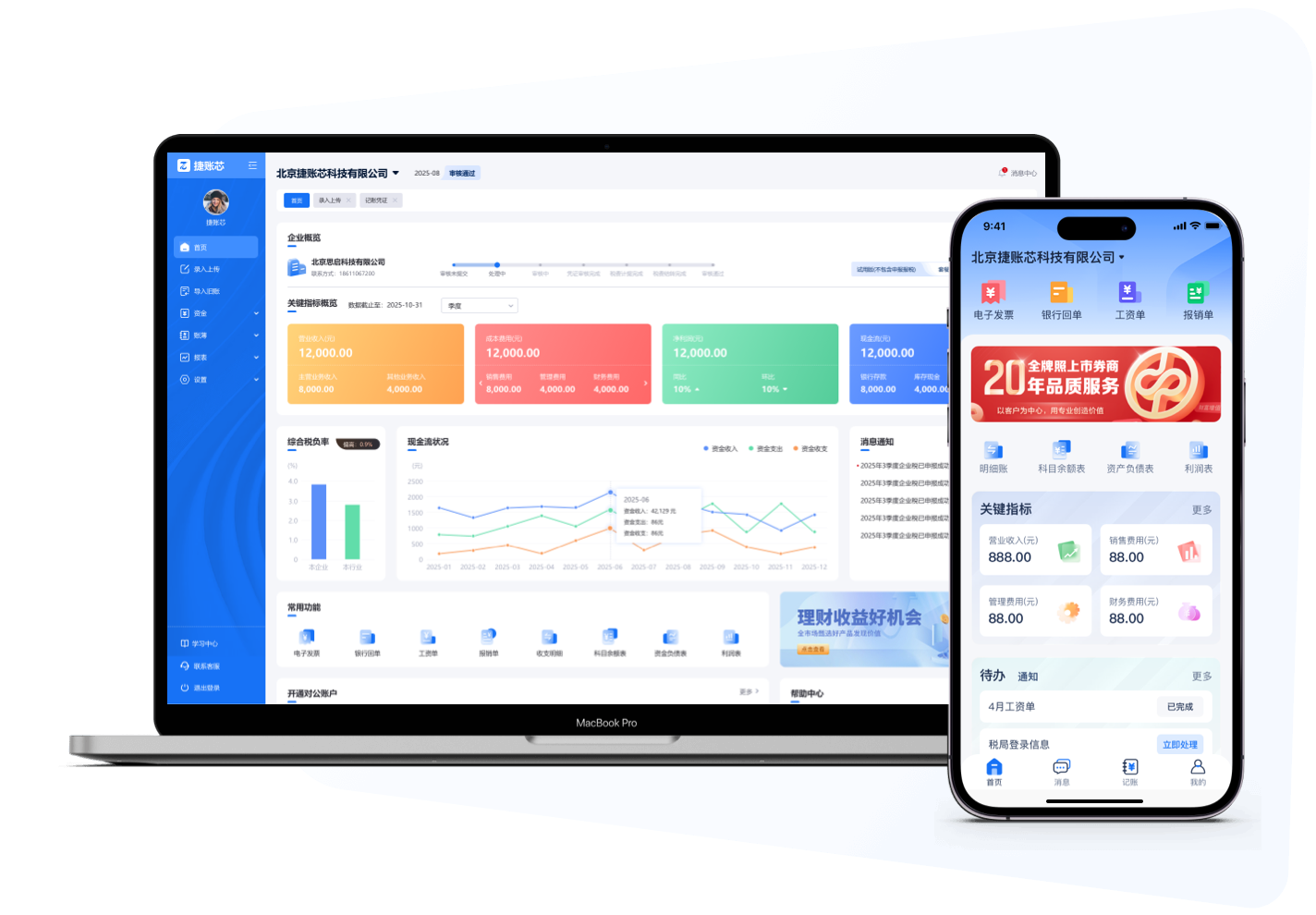 捷账芯,重构代账行业生产力的智能引擎 ---- 不止于记账软件,更是代账公司的智能合伙人。深度融合 智能算法 与财税全流程,自动化消解重复劳动,释放会计专业判断价值,赋能代账机构实现规模化、轻量化扩张。